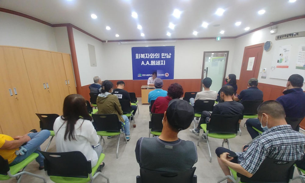 - 음주문제를 혼자서 해결할 수 없다는 것을 인정하고 서로에 대한 격려와 조언을 통해 건강하게 단주생활을 유지를 지지하며, 알코올중독으로부터의 회복을 위해 서로의 경험을 공유하고 대처방안을 함께 토의하는 자조모임입니다. (매주 목요일 1시 공개모임으로 진행)